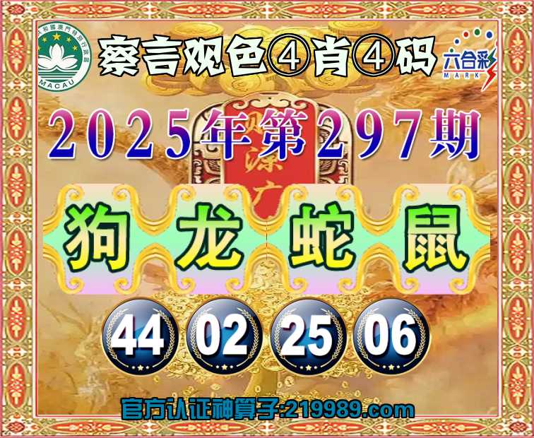 297期:【察言观色】 🥉④肖④码🥉【龙蛇鼠】【44.02.25.06】开:狗44